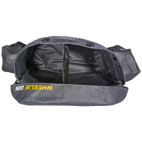 - Rigid, self-supporting 57L main compartment, which is complete with a moveable, rigid centre divider, two side pockets, each with 5L capacity. (Total capacity 67L)